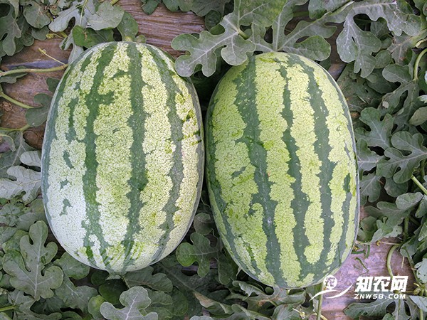 陕西蒲城金城五号西瓜是原甘肃兰州西甜瓜于八十年代中后期选育的杂交一代中晚熟西瓜品种,全生育期105~110天。主蔓第12~15节出现第一朵雌花,以后每隔4~5节出现雌花。从开花至果实成熟需38天左右,果实椭圆形,果皮浅绿覆有16~18条绿色条带,外观极美。皮厚而坚韧,耐旱性强。果肉鲜红,肉质紧实,质地坚韧,极耐贮运,中心含糖量10%以上。单瓜重6~8千克,最大达15千克,植株生长势强,易坐果,丰产性能好,适应性强,近两年在陕西蒲城广泛种植,并获得良好的口碑。